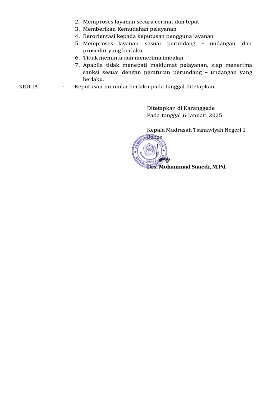 SURAT KEPUTUSAN MAKLUMAT PELAYANAN MTs NEGERI 1 BREBES